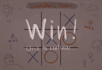 Tic-Tac-Dice is a 2D point-and-click game. The player must beat the computer in three rounds of tic-tac-toe with a twist: roll a die. The one with the highest roll will be able to mark the grid with either an X or an O. With each passing round, the amount of die faces increases from 1d6 in Round One, to 1d12 in Round Two, and finally 1d20 in Round Three.