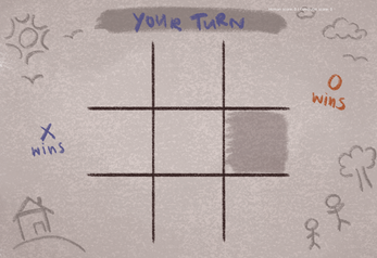 - Click in a grid square to draw an 'X' or an 'O.' (Determined before the start of the first round.)